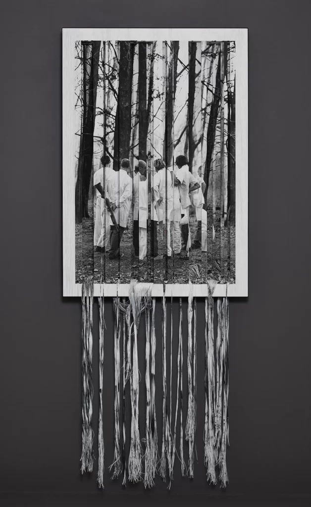 Fotografía impresa sobre 2 urdimbres yuxtapuestas e intervenidas manualmente.