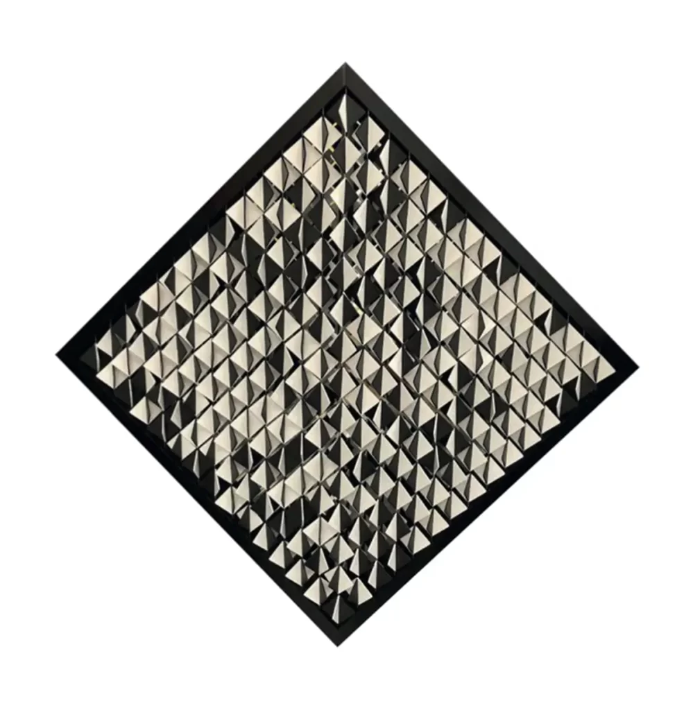 - Recorte y laqueado de 441 módulos cinéticos de 4 caras de 5 x 5 cm c/u.