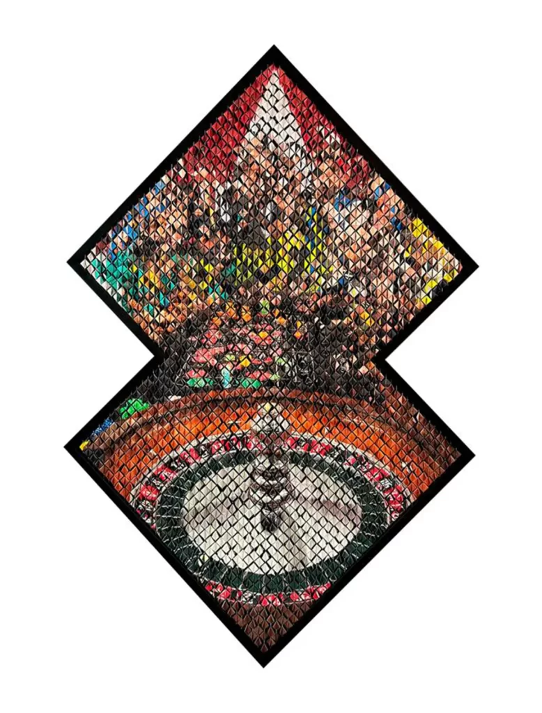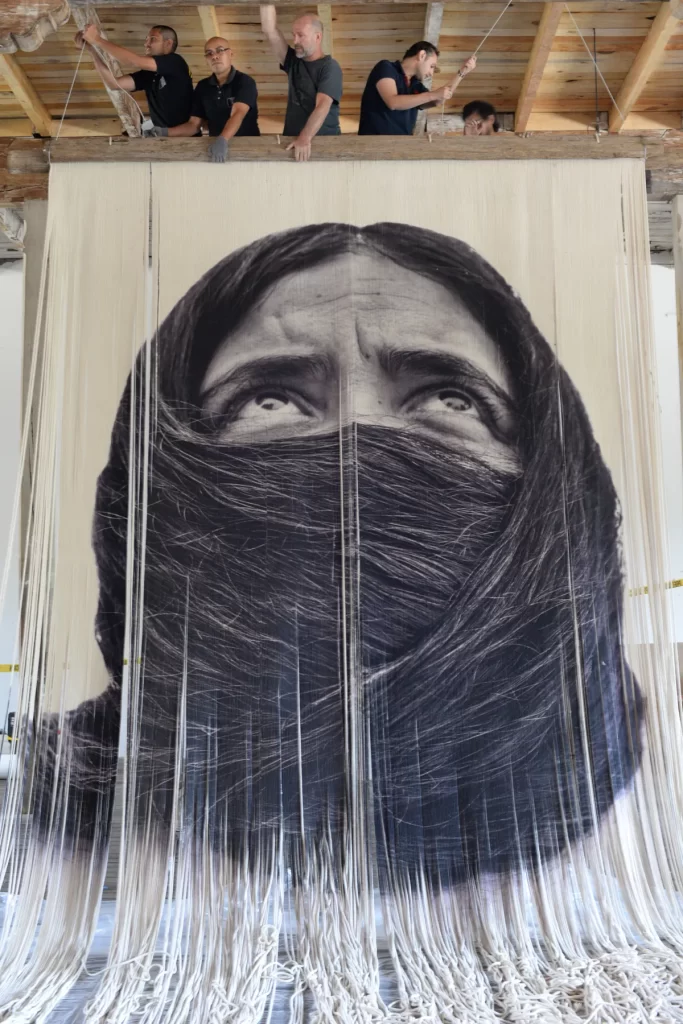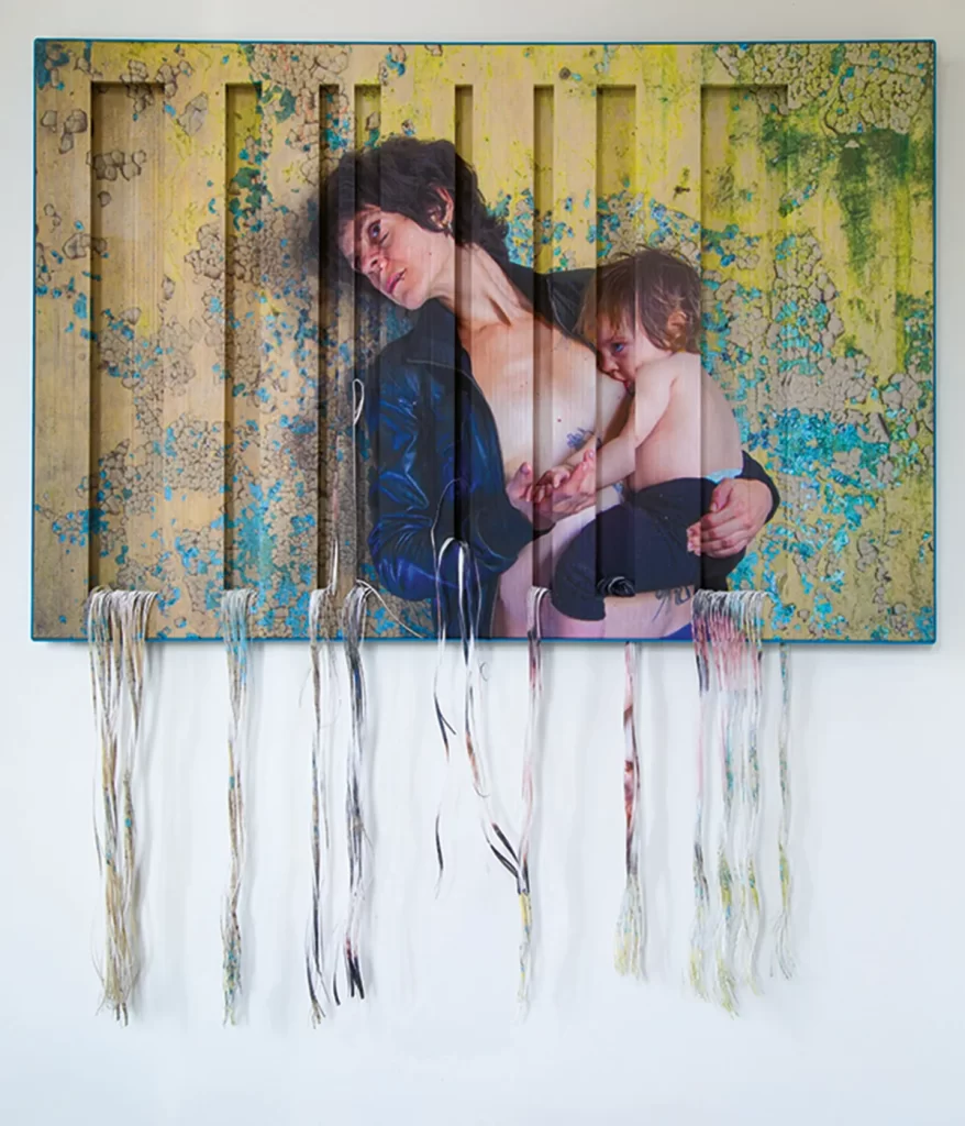 Fotografía impresa sobre 4 urdimbres yuxtapuestas e intervenidas manualmente.