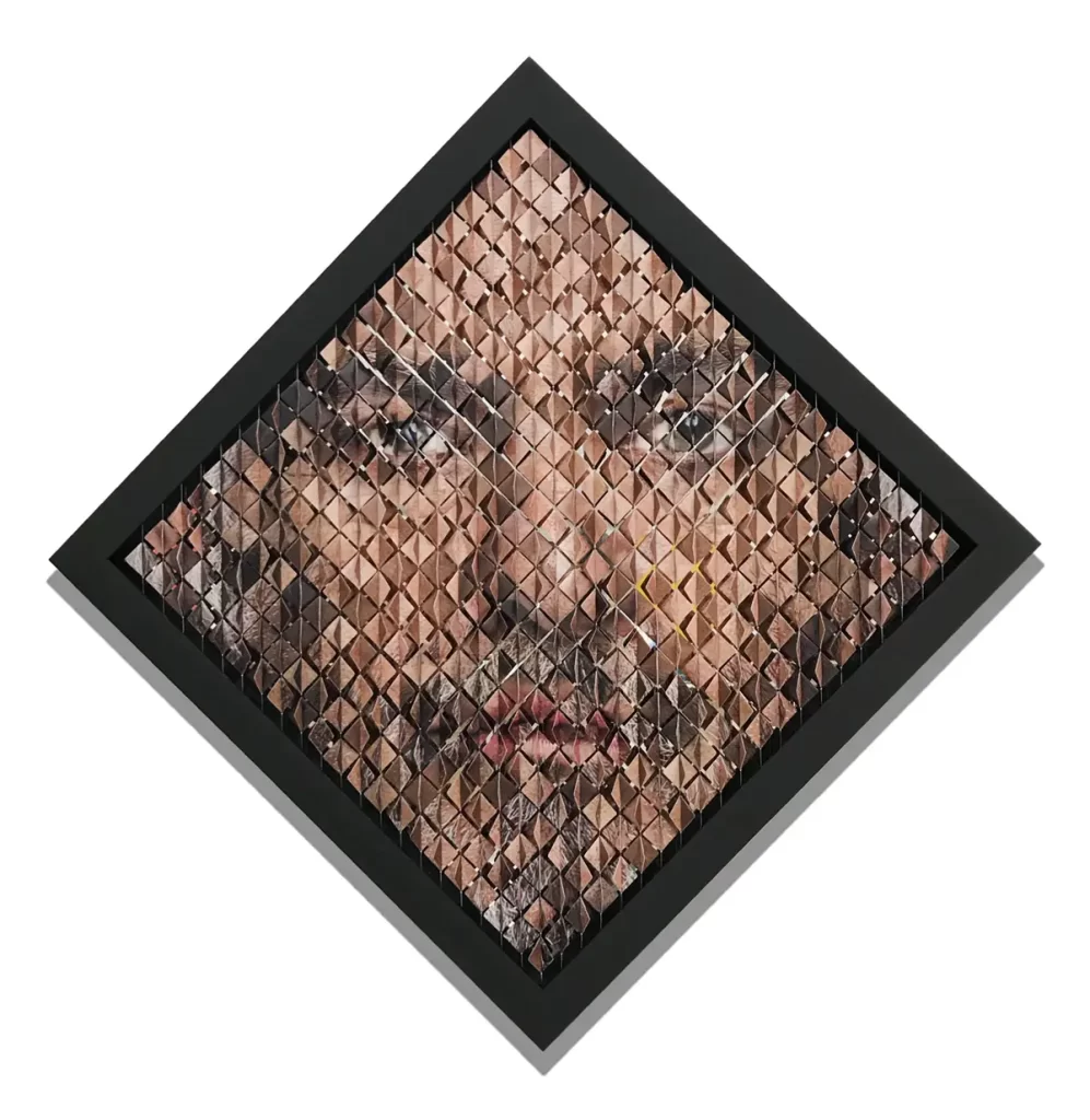 Impresión fotográfica sobre sobre módulos cinéticos de 4 caras de 3 x 3 cm c/u.