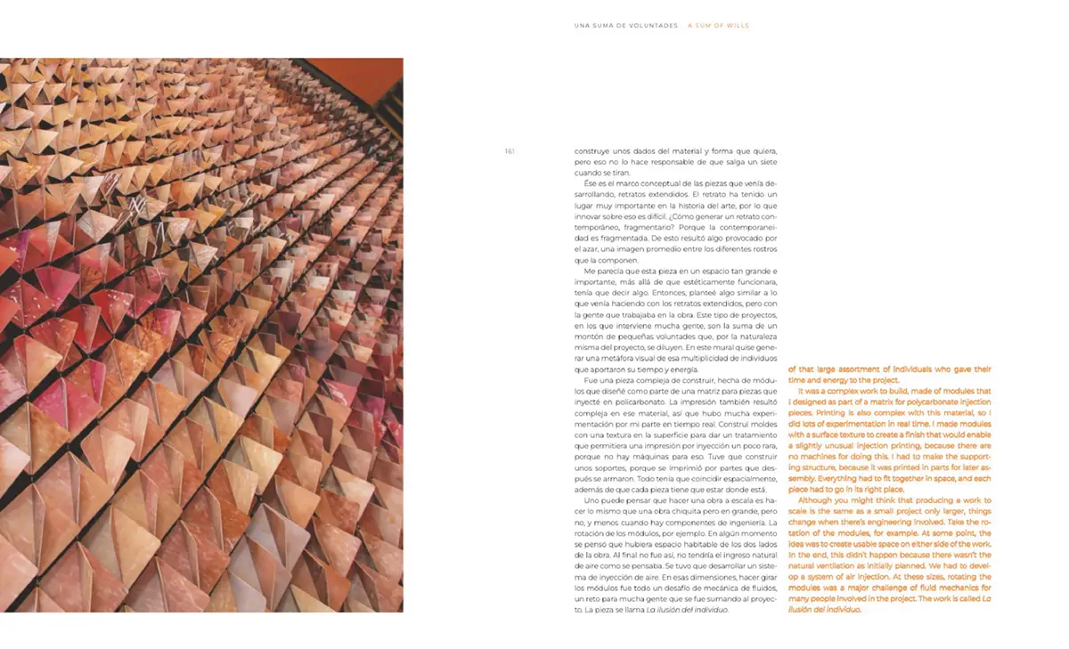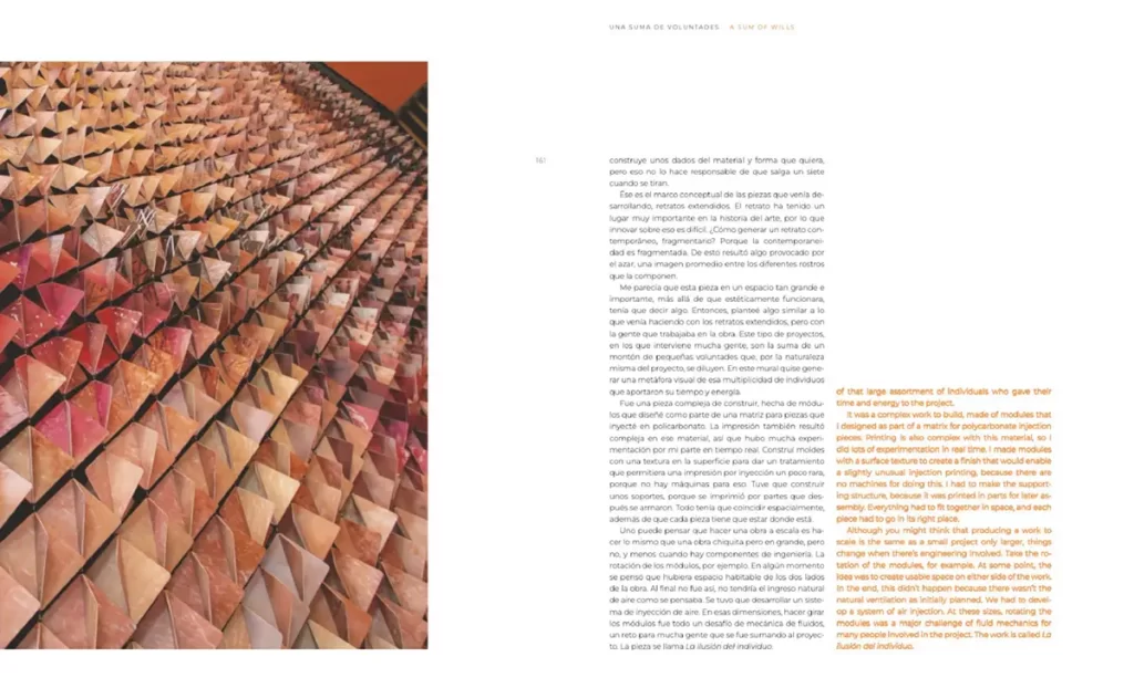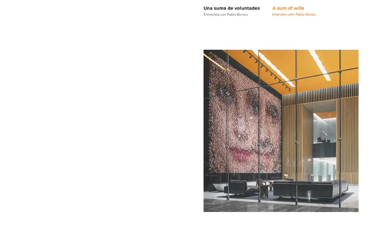 Los rostros retratados pertenecen a albañiles, carpinteros y soldadores, así como también a arquitectos, ingenieros e inversionistas. Varios de ellos integran esta pieza donde, combinando periódicamente partes de sus rostros al azar, generan una nueva identidad mixta; una metáfora visual de la interelación de voluntades y el trabajo mancomunado que son necesarios para el desarrollo de un proyecto de esta envergadura.