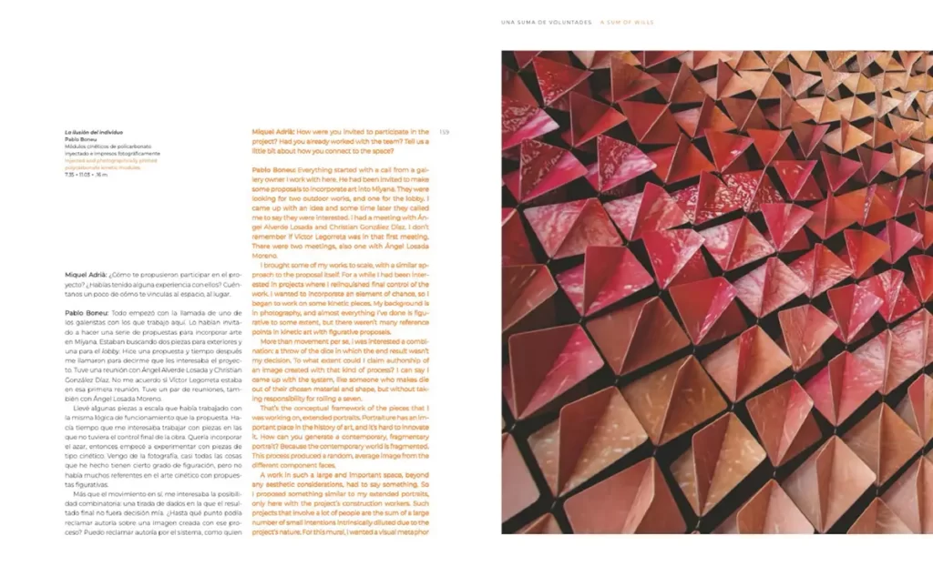 Para la construcción de este mural cinético se realizó un relevamiento fotográfico de todos los hombres y mujeres involucrados en las diferentes etapas de la edificación de la Torre Miyana Fase IV.